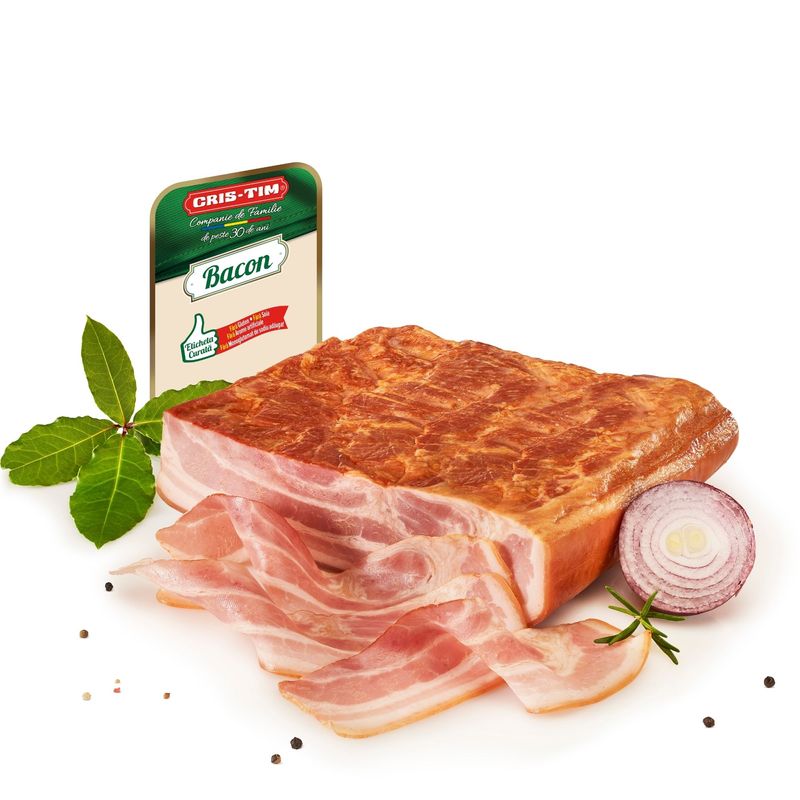 Produs obtinut din piept de porc, condimentat si afumat cu fum natural din lemn de fag. Este potrivit pentru sandvisuri, gustari, dar si pentru platourile de sarbatori. Poate fi de asemenea utilizat si la prepararea unor feluri de mancare principale: tocanite, rulouri de ficatei in bacon, etc.