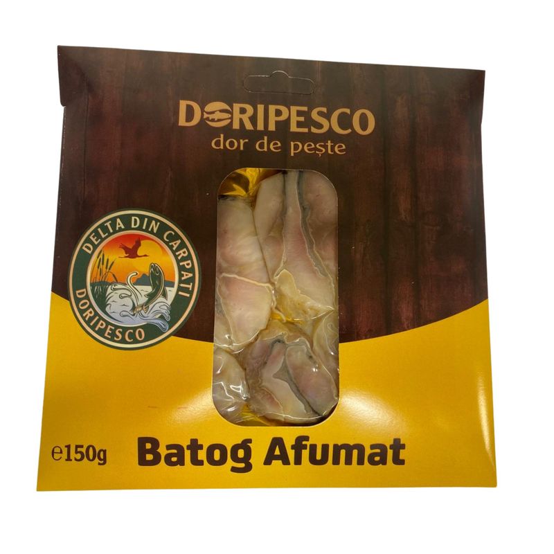 Realizat din fileuri selectionate, sarate si afumate lent pe lemn de esenta tare, batogul afumat Delta din Carpati este o specialitate cu aroma intensa si textura ferma. Procesul traditional de pregatire pastreaza savoarea autentica a pestelui si transforma acest produs intr-o delicatesa apreciata in gastronomia romaneasca. Ideal pentru platouri festive sau meniuri gourmet din HoReCa.