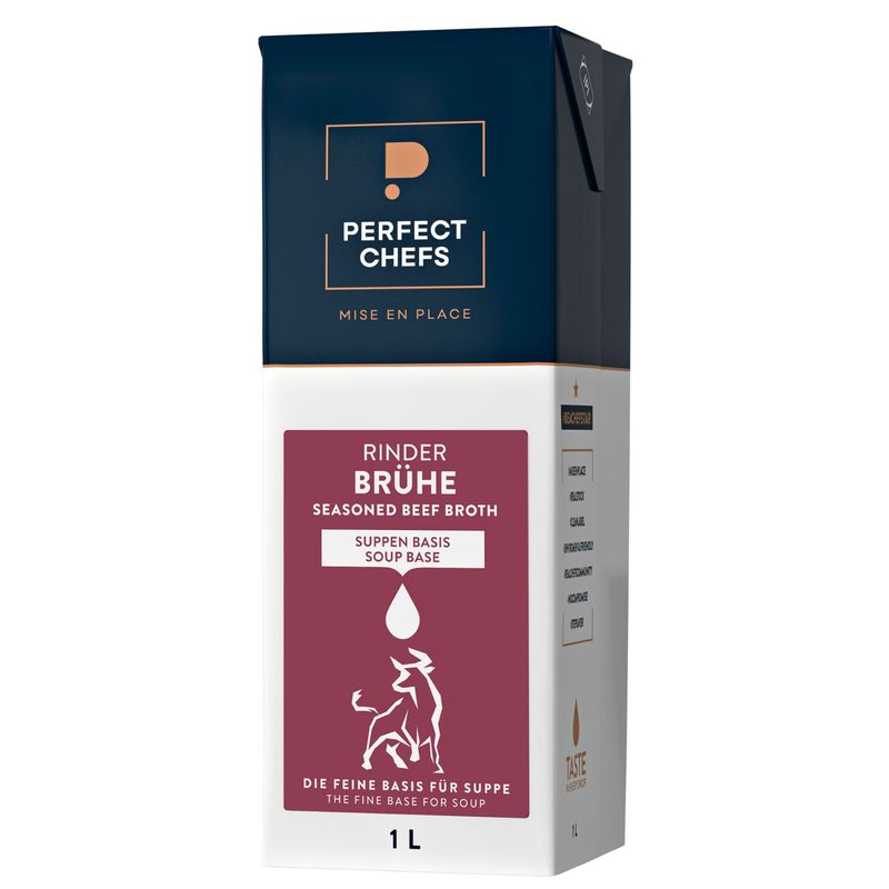 Supa concentrata (apa, carne de vita si oase, ceapa, sare de mare* 0.8%, ulei de floarea-soarelui, pasta de rosii concentrate, condimente). * Sa Sal sare de mare din Mallorca. Pentru prepararea a 1 litru de supa concentrate s-au folosit 500g de carne de vita si oase si 100g de legume.