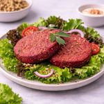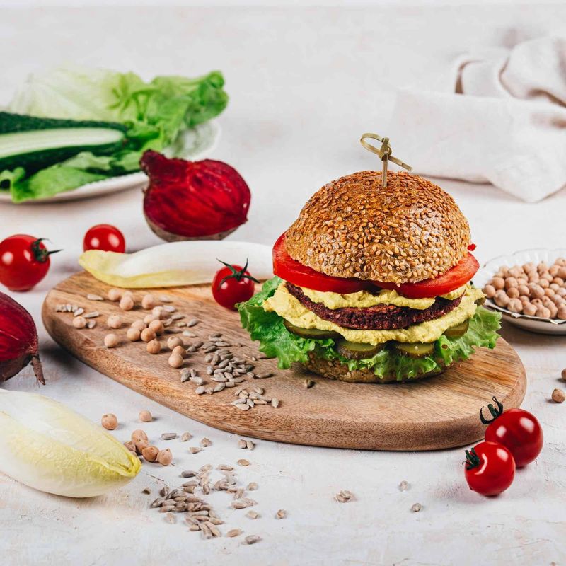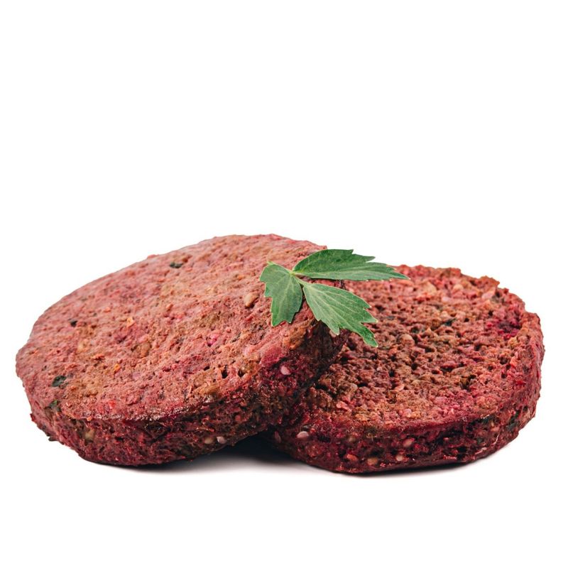 Chiftea vegetala, cu proteine din naut. Produs crud si congelat. Gust bun si culoare rosiatica, data de sfecla rosie. Tocata perfect, aroma apetisanta. Usor digerabila. Sursa de proteine vegetale, fibre, vitaminele B si E. Servire: Chifteaua de burger se poate servi intre jumatati de chifla, in sandvis, simpla alaturi de salata - "naked"- sau portionata in 3-4 chiftelute - simple sau pe un bat de frigaruie.