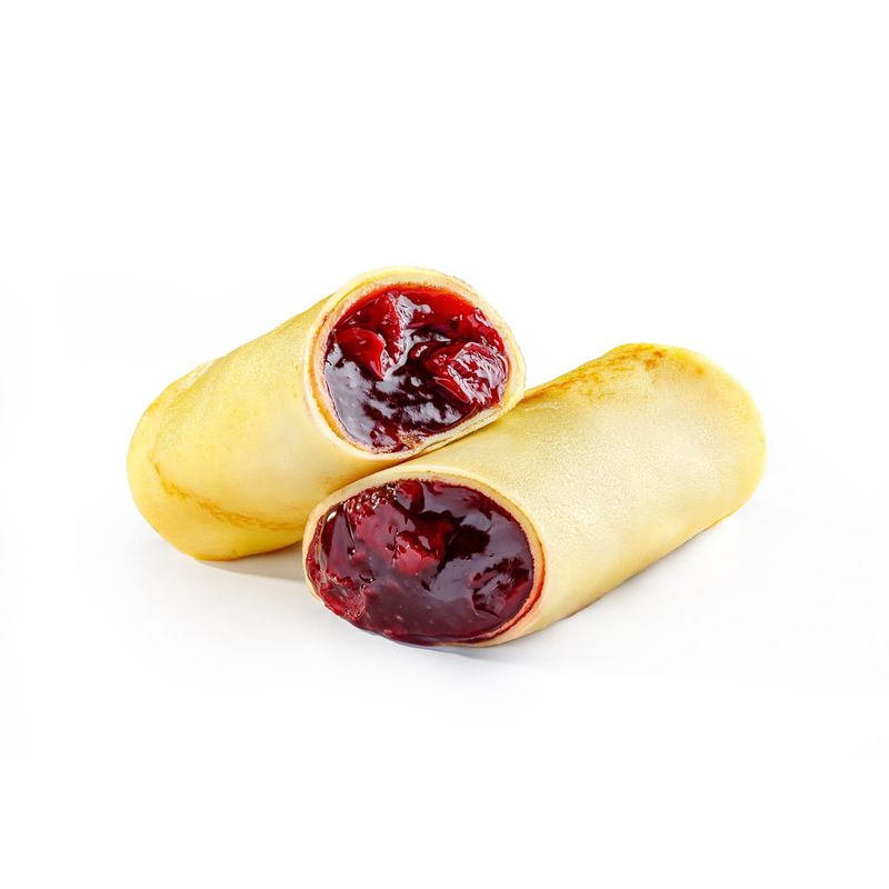 Clatita delicioasa umpluta cu gem aromat de capsuni, ideala pentru iubitorii de gusturi dulci si fructate.
