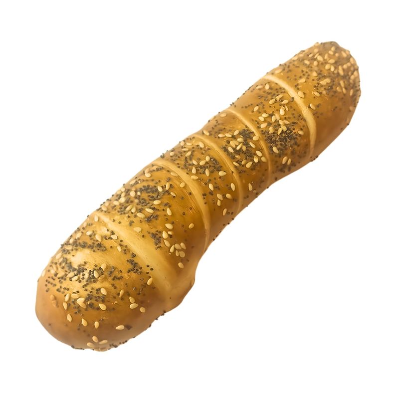 Faina alba de GRAU (tip 650, 550)- din EU, apa, sunca porc presata 21% [pulpa de porc 58.5%, amidon din cartofi, proteina vegetala din SOIA nemodificata genetic, sare, sirop de glucoza, condimente naturale, stabilizatori (polifosfati de sodiu), arome naturale, antioxidanti (acid ascorbic, caragenan), conservant (nitrit de sodiu), colorant natural (carmin)], MOZZARELLA 18% [cas (LAPTE de vaca pasteurizat, cheag, fermenti lactici, sare0, sare], grasime tartinabila (uleiuri si grasimi vegetale rafinate de palmier si floarea soarelui 66%, apa, emulsifiant E471, sare, aroma), drojdie, zahar, seminte SUSAN, seminte mac sare iodata, ameliorator [(faina de GRAU, emulsifiant: E472e, corector de aciditate (lactat de calciu natural), agent de tartare a fainii (cisteina), antioxidant (acid ascorbic), enzime (alfa-amilaza, oxidaze, lipaza, xilanaza, hemicelulaza)].