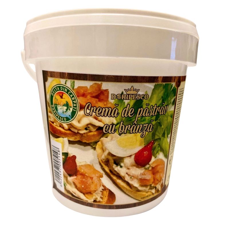 Crema de pastrav cu branza este un produs delicat si savuros, obtinut din file de pastrav proaspat, fin maruntit si imbinat cu branza cremoasa de calitate. Rezultatul este o pasta tartinabila cu textura fina si gust echilibrat, care combina aroma autentica a pastravului cu prospetimea si onctuozitatea branzei.