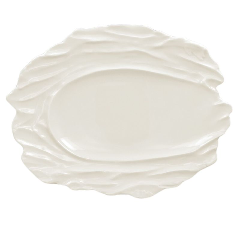 Farfurie intinsa, cu relief, forma potcoava, alba, portelan, Sketches, dimensiune 34.3*26.7cm/27.4*14.3*6.3cm. Cantitate minima 6 buc.