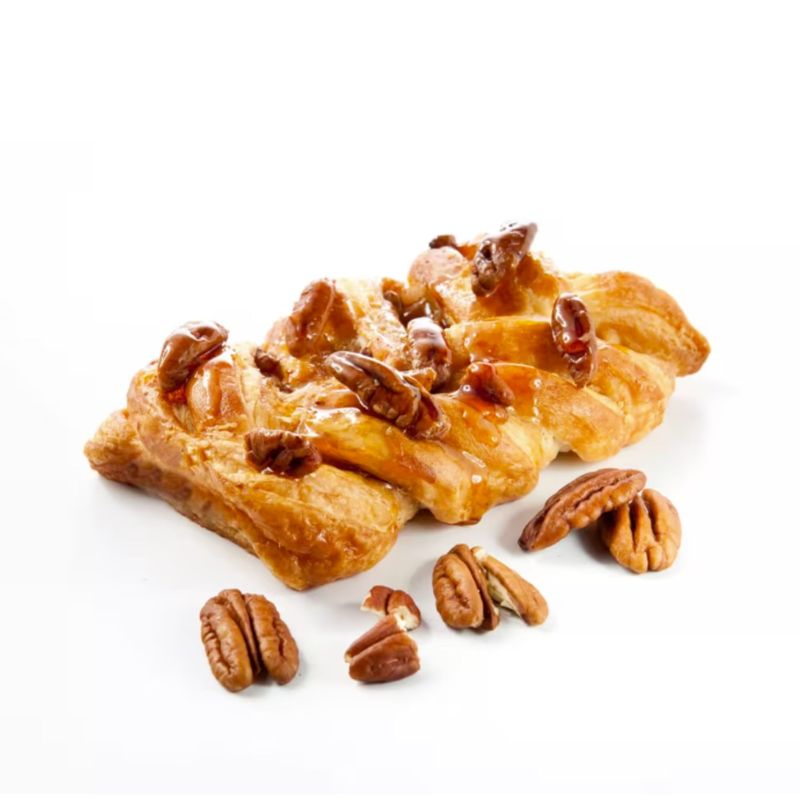 Faina (GRAU, GRAU maltat), apa, grasimi vegetale (palmier, nuca de cocos), zahar, uleiuri vegetale (rapita), NUCI PECAN, sirop de zahar invertit, sirop de glucoza, amidon, sirop de artar, LAPTE integral praf, drojdie, sare, aroma naturala, otet, pudra de alge Gracilaria, agent de tratare a fainii (acid ascorbic), concentrat de suc de lamaie, enzime (GRAU), drojdie inactivata, gluten de GRAU. Acest produs poate contine parti dure.