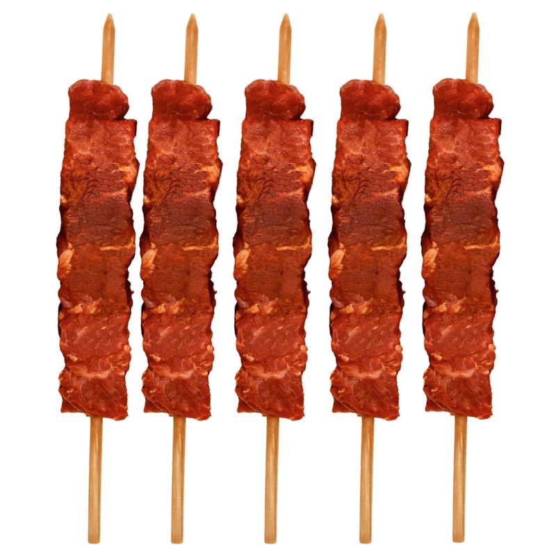 Frigarui din carne de manzat atent selectionata, marinata, taiata uniform pentru o gatire corecta si suculenta. Carnea este frageda, cu un gust delicat, fiind ideala pentru grill, cuptor sau tigaie. Prin modul de portionare si calitatea materiei prime, frigaruile isi pastreaza textura si savoarea dupa gatire. Produs ambalat in vid.