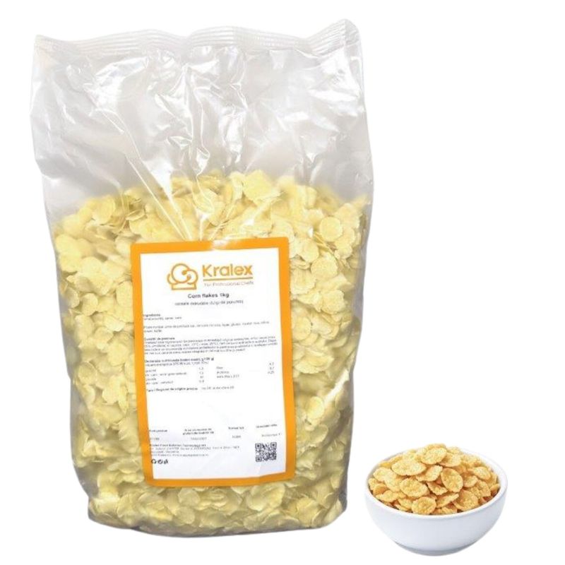 Fulgi de porumb obtinuti din cereale extrudate, ideali pentru mic dejun sau utilizare in diverse preparate si produse de patiserie. Contin faina de porumb, zahar si sare, oferind gust placut si textura crocanta.