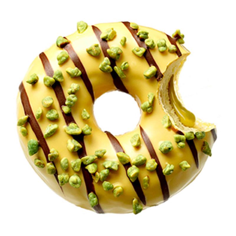 Faina de GRAU, umplutura de FISTIC (19%) (zahar, uleiuri vegetale nehidrogenate (floarea‐soarelui, palmier), FISTIC (15%), LAPTE degresat, ZER praf (LAPTE), LACTOZA, coloranti (E100, E163), emulsifiant (E322), aroma naturala (vanilie)), uleiuri vegetale nehidrogenate (palmier, rapita, samburi de palmier), zahar, apa, ciocolata (5%) (masa de cacao, zahar, unt de cacao, emulsifiant (E322(SOIA)), aroma naturala (vanilie)), MIGDALE (4%), drojdie, faina de SOIA, sare iodata (sare, iodat de potasiu), emulsifianti (E472e, E471, E481, E322), GLUTEN (GRAU), agenti de afanare (E500ii, E450i), ZER praf (LAPTE), LAPTE degresat, amidon din GRAU, concentrat (spirulina, sofranel), drojdie pudra, aroma naturala (FISTIC), coloranti (E163, E160a), antioxidant (E300).