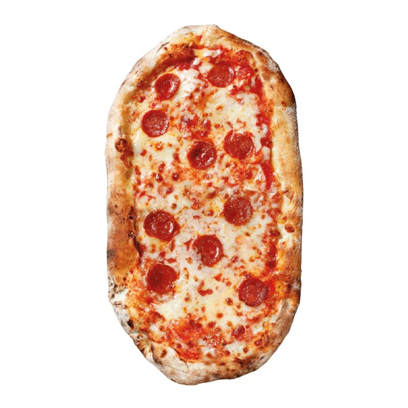 Faina de GRAU, apa, MOZZARELLA, pulpa de rosii, salam picant afumat 8%, sirop de glucoza, extract de condimente, ulei vegetal, sare, drojdie uscata, faina de GRAU maltuit, germeni de GRAU, ulei de masline extravirgin.