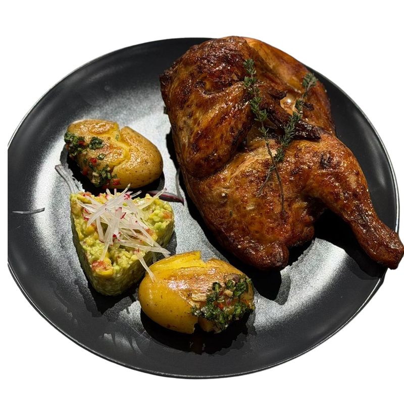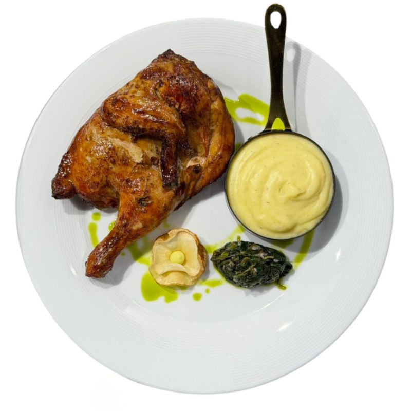 Jumatate de pui gatit lent, condimentat cu sare, usturoi, ceapa pentru un gust autentic si o textura frageda. Produs congelat, fabricat in Romania. In pachet sunt 2 jumatati.