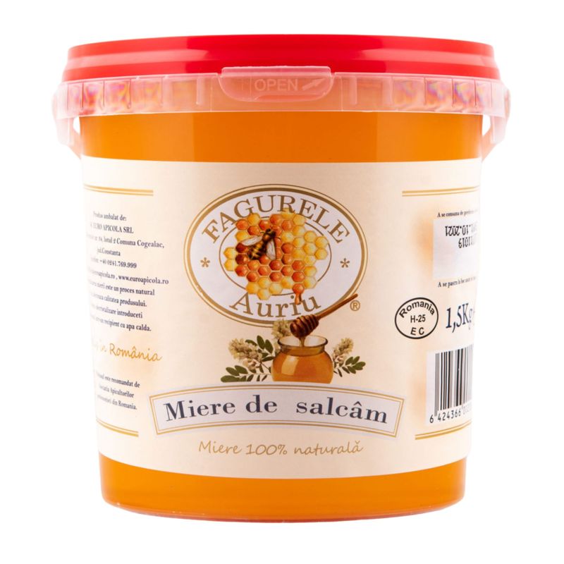 Miere de salcam cu gust fin, aroma delicata si textura fluida, apreciata pentru claritatea sa. Formatul de 1,5 kg este potrivit pentru consum constant si pentru locatii cu cerere ridicata.