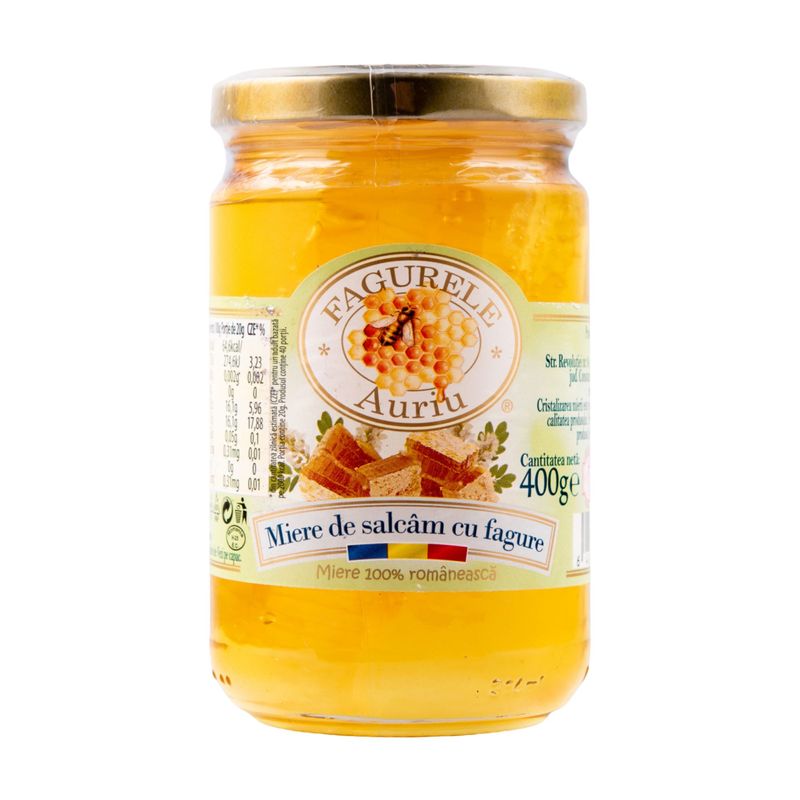 Miere de salcam cu fagure natural, produs premium ce ofera o experienta autentica si aspect atractiv la raft. Ideala pentru segmentul gourmet, iar ambalajul de 400g si baxul sunt potrivite pentru vanzare specializata.