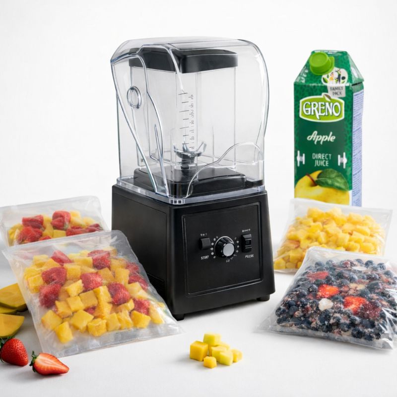 Smoothie mango, capsuni Mango Dream: mango 60%, capsuni 40% (marja de tolerantat mix 10%) + Smoothie capsuni, mure, coacaze negre Berry Energiser: coacaze negre 40%, capsuni 30%, mure 30% (marja de tolerantat mix 10%) + Smoothie capsuni, piersici, papaya Strawberry Deligh: capsuni 40%, papaya 30%, piersica 30% (marja de tolerantat mix 10%) + Smoothie papaya, mango, ananas Tropical Twist: ananas 40%, mango 30%, papaya 30% (marja de tolerantat mix 10%) + Suc natural mere verzi, baza pentru smootie: 100% Suc de mere verzi.