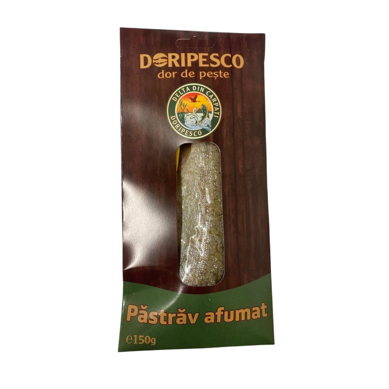 Produs traditional de inalta calitate, obtinut din pastrav proaspat, atent selectionat, filetat si afumat lent, dupa metode clasice. Procesul de afumare cu lemn natural confera pestelui o aroma intensa si un gust autentic, pastrand in acelasi timp textura sa frageda si suculenta.