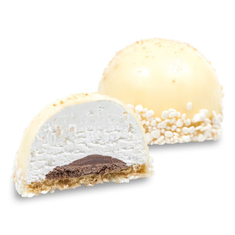 CREMA: crema vegetala (LACTOZA, SOIA), zahar, glucoza, albumina (OU), dextroza, fructoza, proteine vegetale, proteina din LAPTE (LACTOZA), bezea (zahar, glucoza, albus de OU), aroma cocos; GLAZURA: ciocolata alba (LACTOZA, SOIA), zahar, sirop de glucoza, agar agar, crema de LAPTE (LACTOZA), apa; UMPLUTURA DE VAFA: zahar, grasime vegetala (ulei de palmier, ulei de floarea soarelui), pudra de cacao 10-12%, vafa (GLUTEN), grasimi vegetale partial hidrogenate, emulgatori: lecitina din SOIA, ARAHIDE, aroma, vanilina; PANDISPAN: OUA, zahar, faina alba de GRAU (GLUTEN), amidon de porumb, glucoza, emulgatori: esteri ai acidului lactic cu mono- si digliceridele acizilor grasi, mono- si digliceride, esteri ai acizilor grasi cu propilenglicol, esteri ai acizilor mono- si diacetiltartric cu mono- si digliceridele acizilor grasi, stearoil lactat de calciu, LAPTE praf degresat (LACTOZA), stabilizator: guma xantan, proteina din LAPTE (LACTOZA), agenti de afanare: difosfat de sodiu, carbonat de sodiu, vanilina; FULGI DE CIOCOLATA ALBA: zahar, grasimi vegetale hidrogenate (ulei de palmier), LAPTE praf degresat (LACTOZA), emulgator (lecitina din SOIA), sirop de glucoza, agent de glazurare: shellac, aroma (vanilina); COCOS.