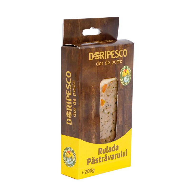 Rulada Pastravarului Doripesco – specialitate traditionala din Maierus, cu carne de sanger si novac condimentata, invelita in pastrav afumat cu lemn de fag si frunze de telina.
