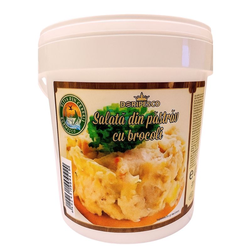 Preparat savuros, conceput pentru consum profesional in cantitati mari. Combina pastrav proaspat cu broccoli bogat in vitamine si fibre, oferind o textura cremoasa si crocanta in acelasi timp. Dressingul fin completeaza gustul, rezultand un preparat echilibrat si apetisant.