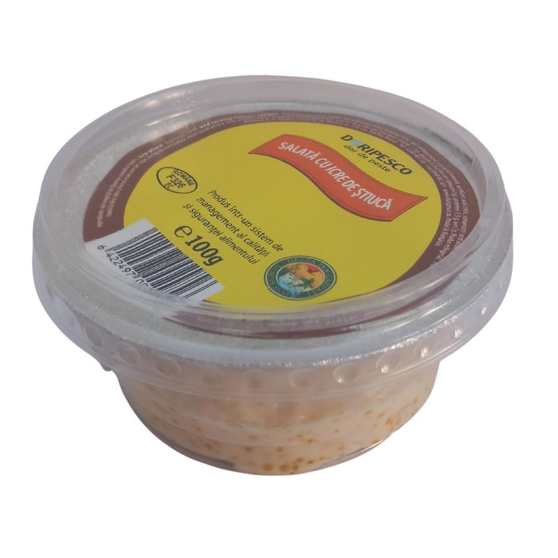 Salata fina de icre de stiuca, cu gust autentic si delicatete pescareasca, pregatita dupa reteta traditionala, ideala pentru aperitive rafinate in restaurante si evenimente.