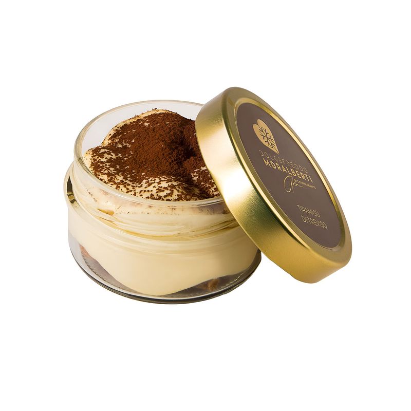 Tiramisu clasic italian, cu crema pe baza de mascarpone si galbenus de ou, aromat cu cafea moka. Produs certificat, conform retetei originale Tiramisu di Treviso. Ambalaj: 24 portii individuale.