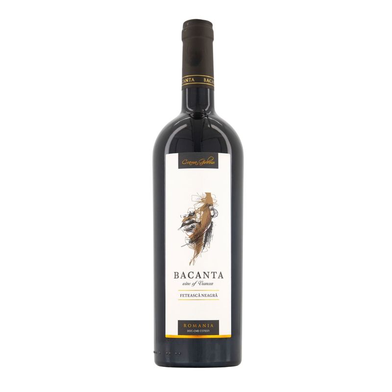Vin rosu sec, corp mediu spre corpolent, produs din soiul autohton Feteasca Neagra – considerat un vin reprezentativ pentru Romania. Bacanta are arome intense de prune negre, coacaze rosii si mirodenii (scortisoara, anason, cuisoare), cu nuante fine de baric (vanilie, piele). Taninii sunt pronuntati, aciditate echilibrata si postgust lung, suprinzator de echilibrat.