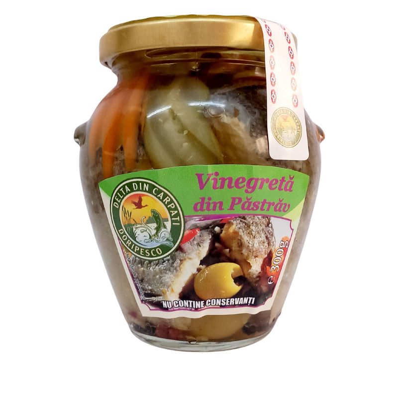 Carnea slaba si dulceaga a pastravului proaspat scos din bazinele Doripesco, este pusa la marinat intr-un sos acrisor cu vin alb si multe legume, precum castaveti, morcovi, masline verzi si ardei iute. Dupa ce carnea se macereaza, gustul este unic, intrucat fiecare leguma contribuie la incantarea papilelor gustative.